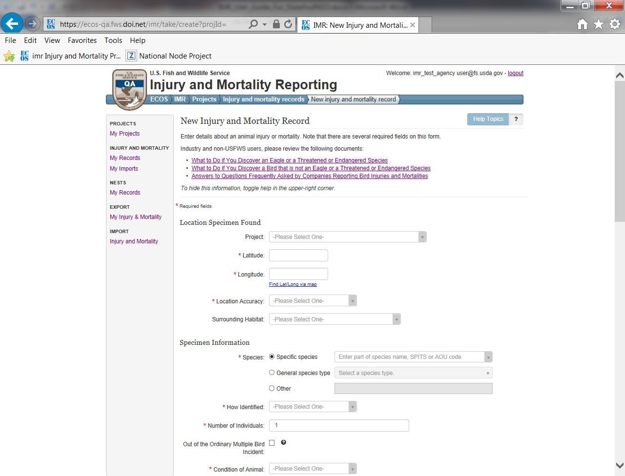 Injury and Mortality Reporting (IMR) System User Guide for Non-Federal Users