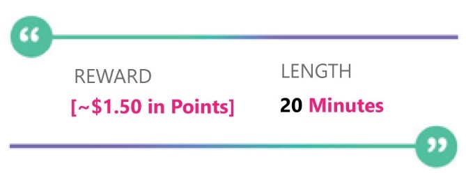 As you are a Toluna Influencer, we value your opinion highly. Today you can earn [~$1.50 in points] by filling in this survey.