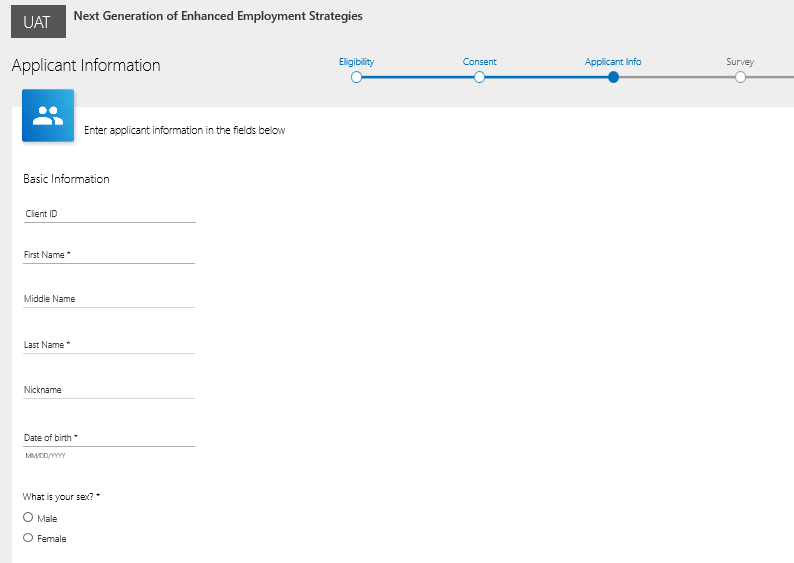 The purpose of this information collection is to evaluate innovative programs serving individuals facing challenges to employment and economic independence to expand the evidence base. Public reporting burden for this collection of information is estimated to average 25 minutes per response, including the time for reviewing instructions, gathering and maintaining the data needed, and reviewing the collection of information. This is a voluntary collection of information. An agency may not conduct or sponsor, and a person is not required to respond to, a collection of information subject to the requirements of the Paperwork Reduction Act of 1995, unless it displays a currently valid OMB control number. The OMB # is 0970-0545 and the expiration date is 04/30/2023. If you have any comments on this collection of information, please contact Mathematica at NextGenProject@mathematica-mpr.com.