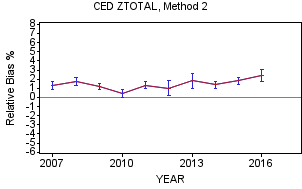 Each of the four methods have strengths and weaknesses so picking one over the other is subjective. The report will describe each method and provide tables and graphs that highlight the magnitude of the bias and trends over the ten-year period.