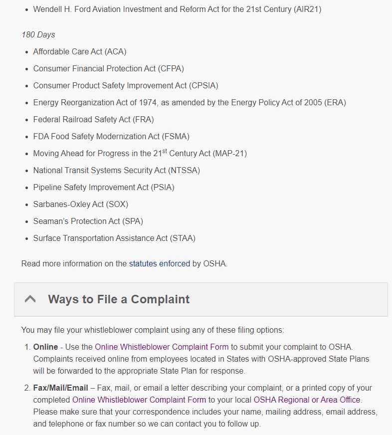 Regulations Containing Procedures for Handling of Retaliation Complaints
