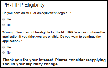 Biological, biomedical, or animal sciences Business, management Community health, public health Decision or quantitative sciences Economics (agricultural, applied, health) Engineering, industrial engineering, operations research Environmental, occupational sciences Epidemiology Global, international health Health education Informatics (public health, clinical, nursing) Health services administration, health policy analysis Health services research, quantitative policy analysis Information technology, information science, computer science Liberal arts, general studies, humanities, language, literature Maternal and child health Mathematical sciences, statistics, biostatistics Physical or chemical sciences Political science, law Public administration, policy analysis Social/behavior science (anthropology, social work, psychology) Other