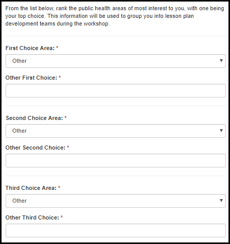 Other First [Second | Third] Choice Area |