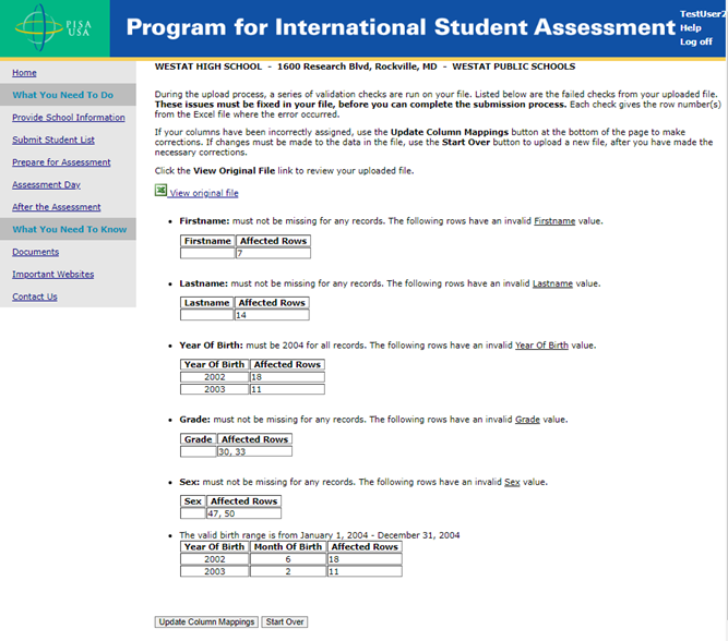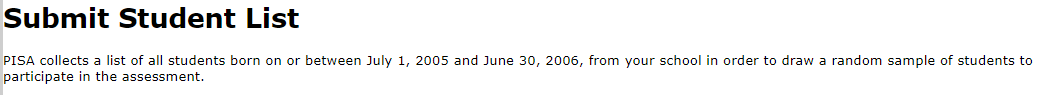 Throughout this document are screenshots that show the web content of MyPISA.us for schools and school coordinators from the field test in PISA 2022, along with text for the PISA 2022 field test. The last section of this document, “MyPISA project website for School Coordinators and schools,” documents the contents of the website most extensively, but MyPISA screenshots also appear throughout the sections, “Instructions for School Coordinators to E-file student lists,” and “PISA 2022 Field Test School Coordinator Handbook”. MyPISA.us is described in Part B of the main study package.