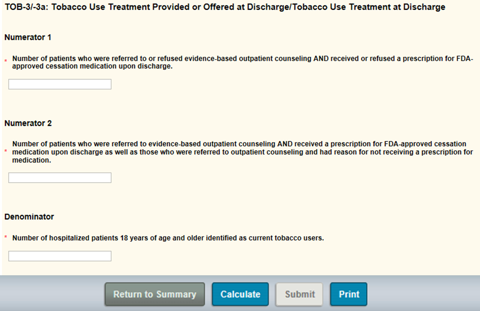 Enter the numerator for TOB-3, the numerator for TOB-3a and the denominator.