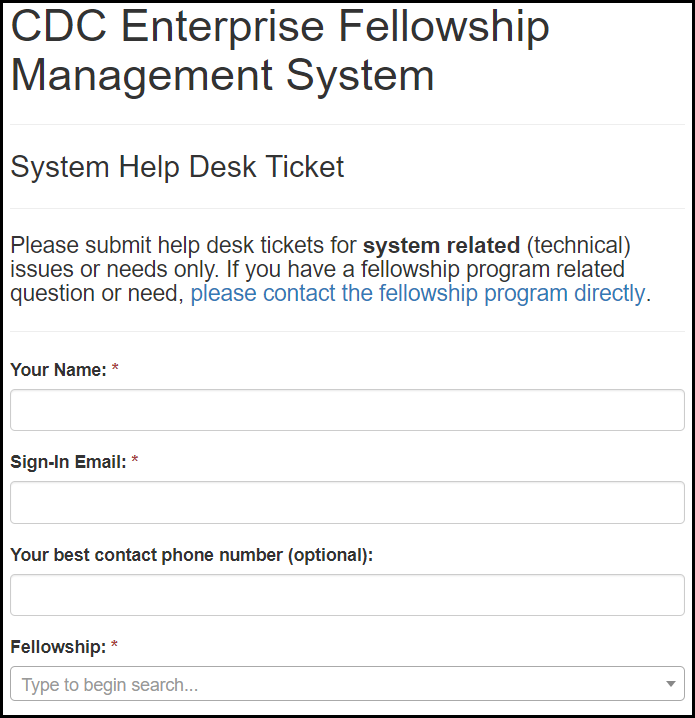 This document is broken down by the major pages of the FMS Application. In this document, each page of the FMS Application has sections and some sub-sections. In addition, application instructions, login, and registration pages are included. Instructions and emails in the FMS Application are tailored to each CDC fellowship’s requirements, eligibility criteria, information, and timeline.