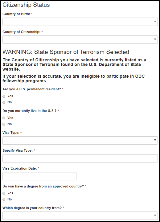 The purpose of this document is to list all the data elements collected online through the Fellowship Management System (FMS). The FMS online application module is a streamlined mechanism for applicants of the Centers for Disease Control and Prevention (CDC) fellowships to submit their information online and track statuses of the application processes (e.g., all required materials received, invited for interviews). The FMS is a robust flexible framework and the FMS Application Module is tailored successfully for various CDC fellowships:
