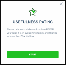 After respondents select “START” at the bottom of the usefulness section of the rating activity general instructions message, they will be presented with pop-up windows with detailed instructions on the usefulness section of the rating activity as illustrated in Exhibits 6d-1 and 6d-2. Respondents can choose to skip or navigate forward or back through these instructions. After respondents progress through (or skip) these instructions, they will advance to the activity interface where they can begin the usefulness section of the rating activity (See Exhibit 6e).
