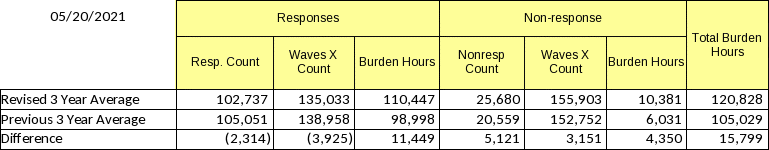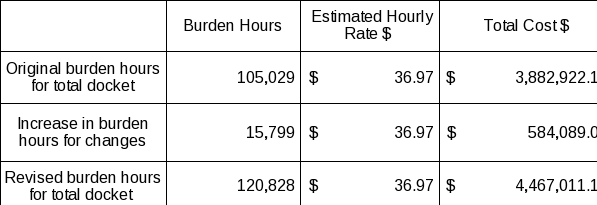 The following table contains the estimated burden hours for the surveys included in this supplemental supporting statement. Cost to the public for completing the questionnaire is assumed to be comparable to the hourly rate of those requesting the data. The adjusted overall cost to the public is estimated at $4,467,011.16.