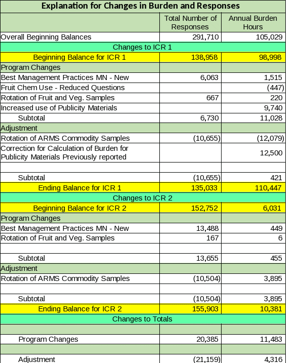 NASS is requesting a substantive change to the ARMS and Chemical Use Survey docket (0535-0218) to accommodate changes to several of the ARMS and Chemical Use surveys along with the addition of one chemical use survey done under a cooperative agreement with the state of Minnesota.