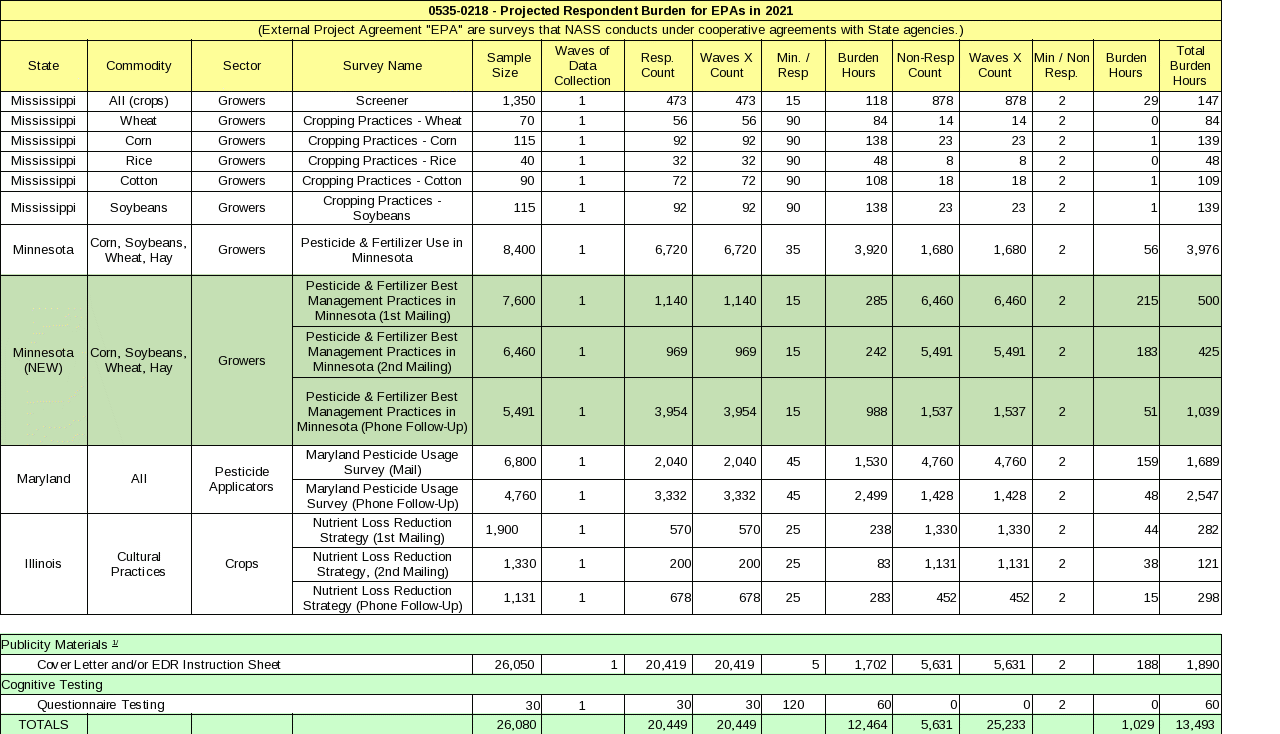 In addition, the Best Management Practices survey which is conducted through a cooperative agreement with the Minnesota State Department of Agriculture is being added to this approval.