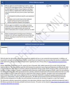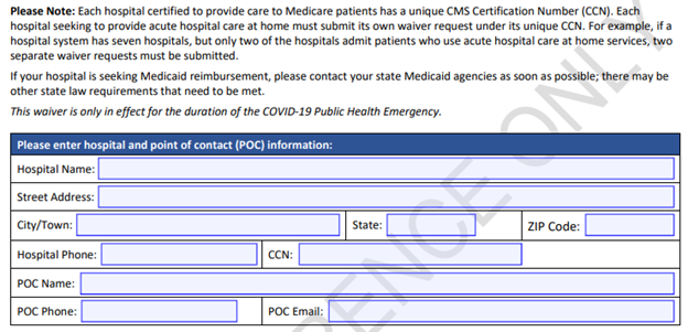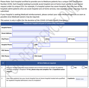 Less experienced hospitals, defined as treating fewer than 25 patients with this level of care previously, complete a more detailed waiver request, seen below: