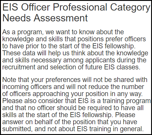 Applied Epidemiology Skills (Oral and Written Communication, Data Analysis, Surveillance, and Field Investigations): What are the officer’s areas for improvement? |