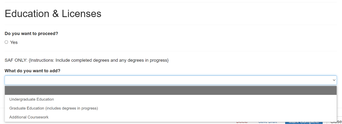 N/A - These fields will be hidden for the SAF Fellow Application. |