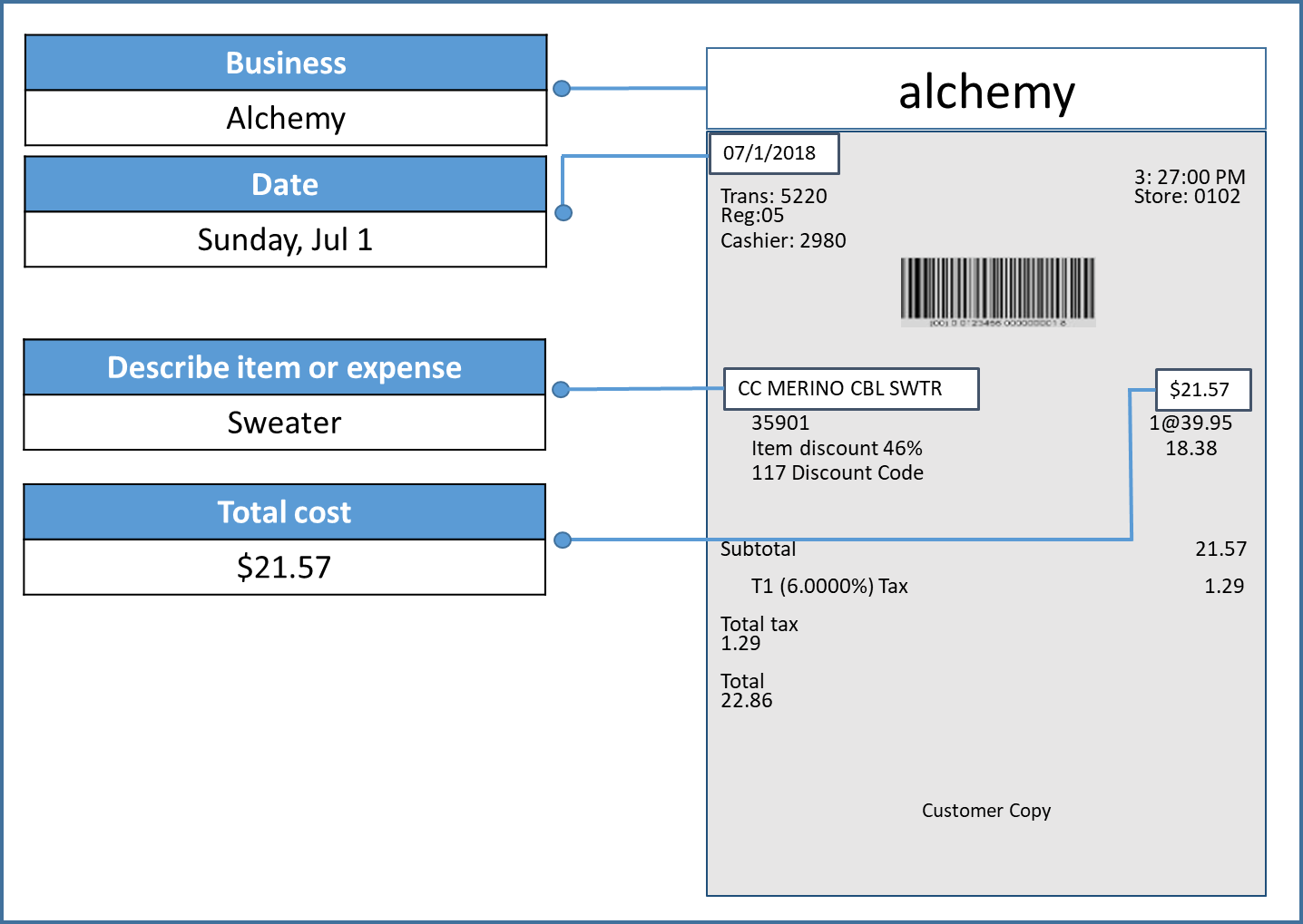 Business (Enter Business Name) - Type in the name of the store, restaurant, or website where the item was purchased.