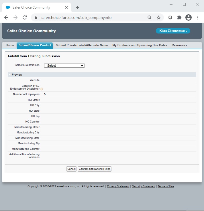 Safer Choice Program: Product and Ingredient Submissions in the Safer Choice Community Cloud-based Salesforce System