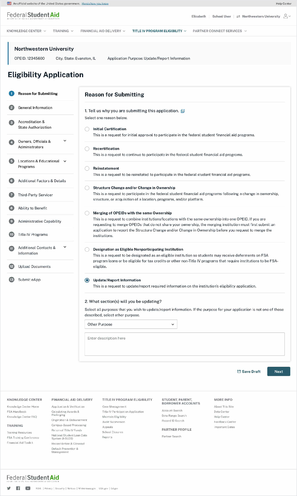 Application for Approval to Participate in Federal Student Financial Aid Programs
