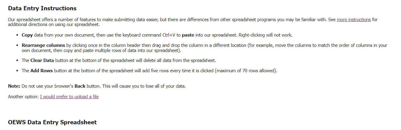 OEWS Weblite - Dat OEWS Weblite - Data Entry 7.1