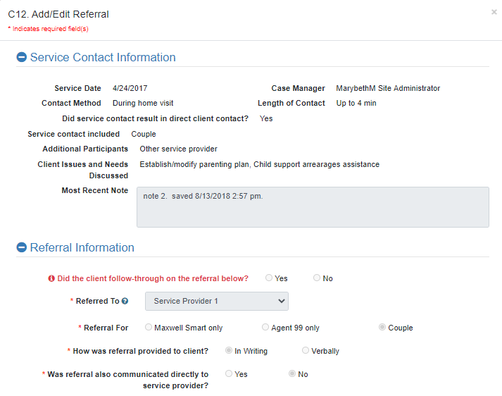 C7/C12/C13. Add/Edit Client Service Contacts, Referrals, and Incentives