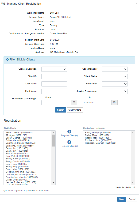 W7/W9/C11. Manage Session Occurrences and Attendance