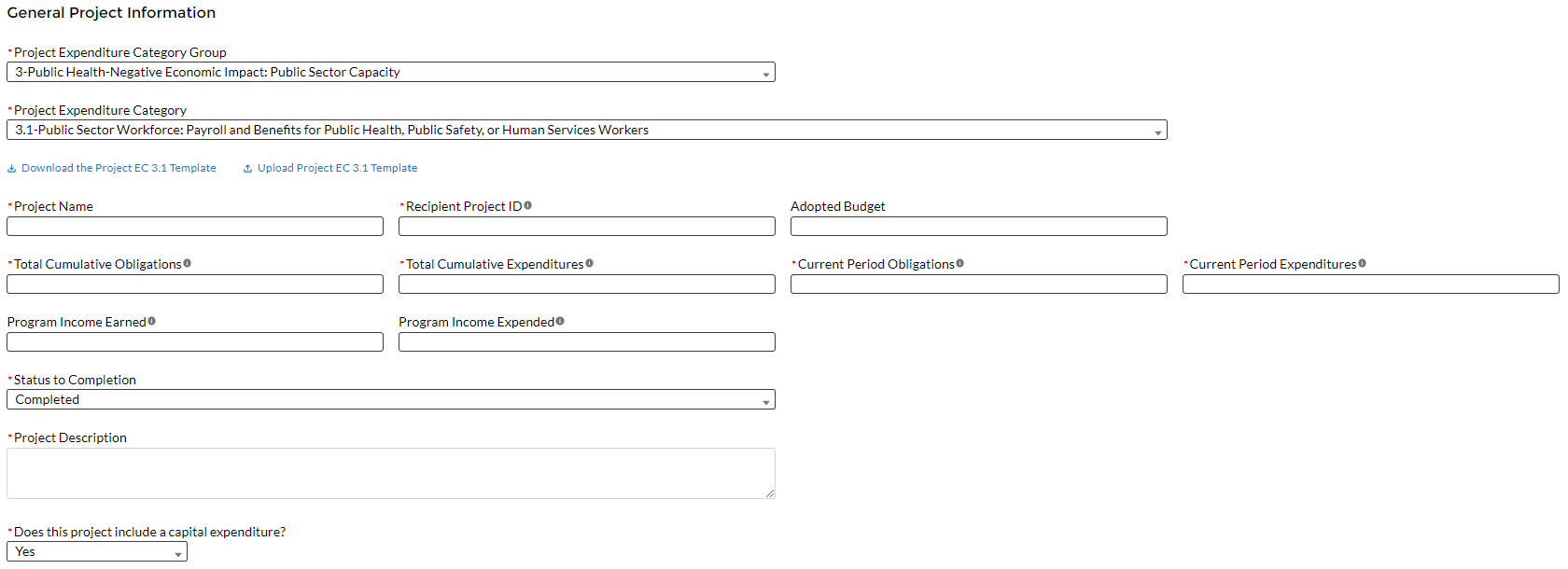 Recipients who have projects categorized under EC 6.1 "Provision of Government Services" are not required at this time to report on the subrecipients, subawards, and expenditures (for subawards or in aggregate) for those projects for the April 2022 reporting cycle.