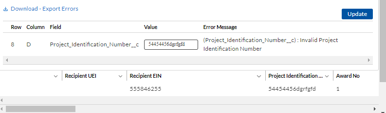 To accommodate Recipients during this transition period, if there are subrecipients who do not yet have a UEI number, and/or have challenges in obtaining one, the April 2022 Project and Expenditure Report form will accept for each subrecipient one of the following two identifiers: