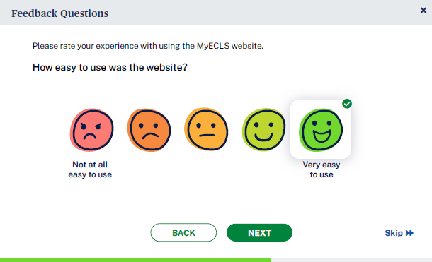 Por favor califique su experiencia con el uso de la página de Internet MyECLS.