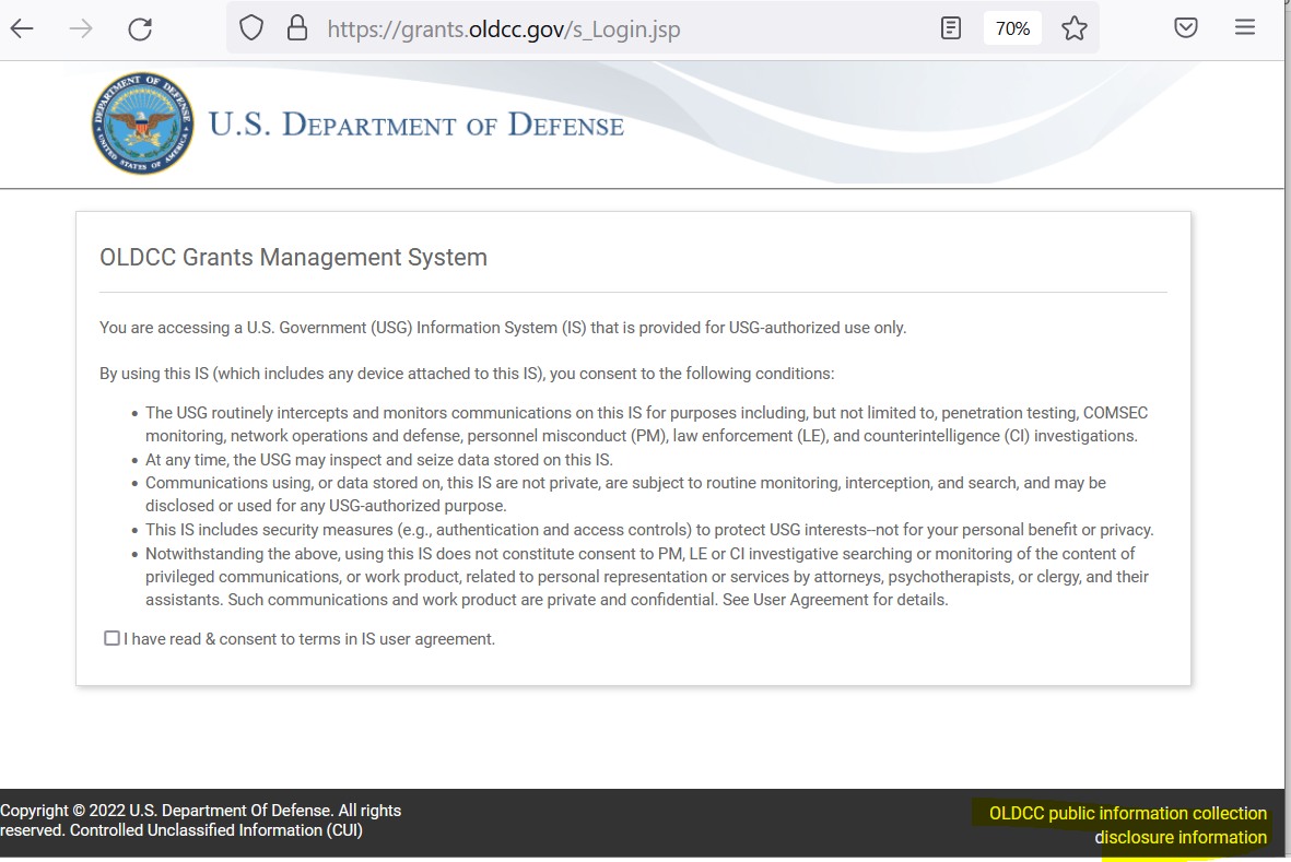 There is a link in the log in page to the disclosures: https://grants.oldcc.gov/s_Login.jsp