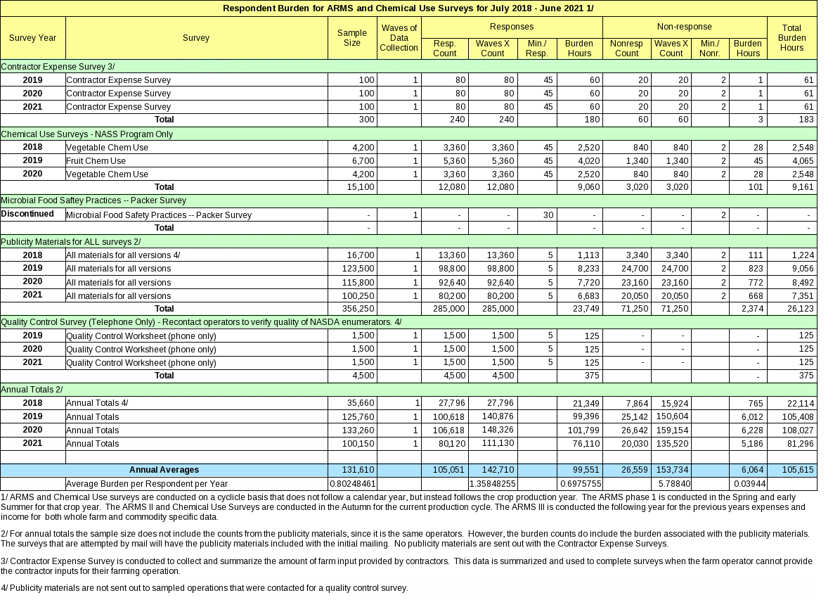 NASS incorporated additional screening questions and skip patterns to help minimize additional burden as much as possible.