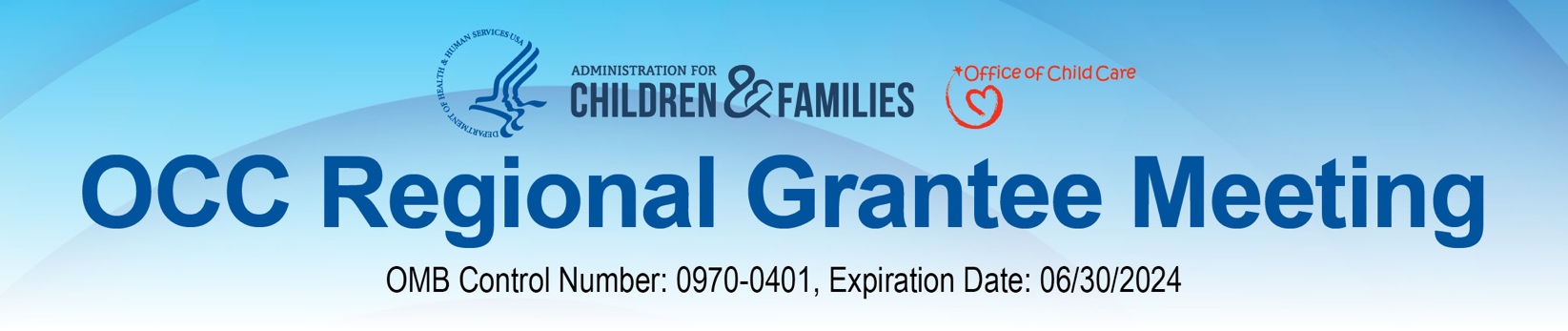 PAPERWORK REDUCTION ACT OF 1995 (Pub. L. 104-13) STATEMENT OF PUBLIC BURDEN: The purpose of this information collection is to obtain feedback from participants in OCC’s Regional Grantee Meeting. Public reporting burden for this collection of information is estimated to average 10 minutes per respondent, including the time for reviewing instructions, gathering and maintaining the data needed, and reviewing the collection of information. This is a voluntary collection of information. An agency may not conduct or sponsor, and a person is not required to respond to, a collection of information subject to the requirements of the Paperwork Reduction Act of 1995, unless it displays a currently valid OMB control number. The OMB # is 0970-0401 and the expiration date is 06/30/2024. If you have any comments on this collection of information, please contact Stacy Cassell, stacy.cassell@acf.hhs.gov.