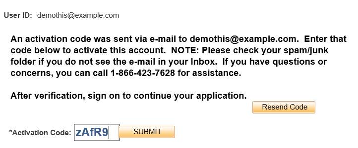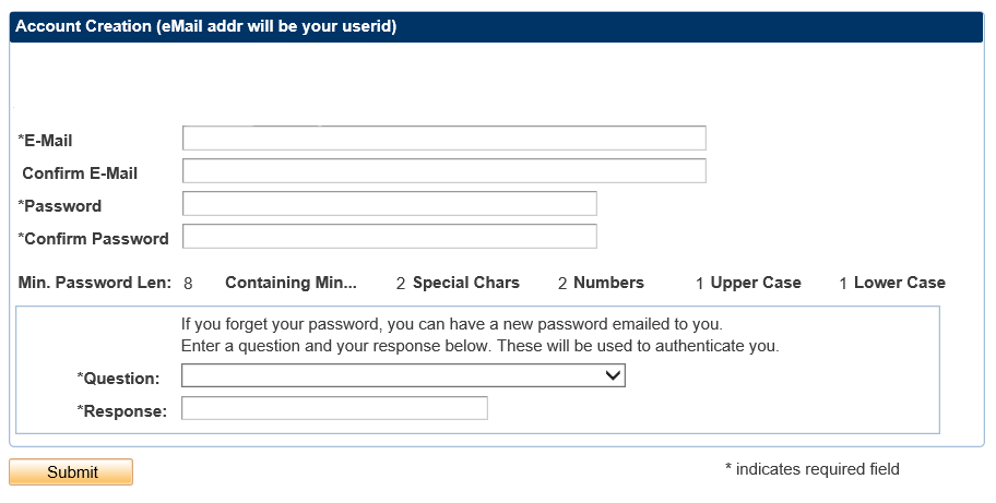 If the Applicant Selected "Yes” and clicked SUBMIT, then the applicant would be allowed to proceed to create an account.