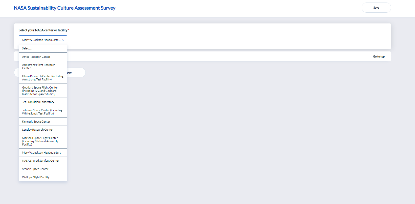 Screenshots of NASA Sustainability Culture Assessment