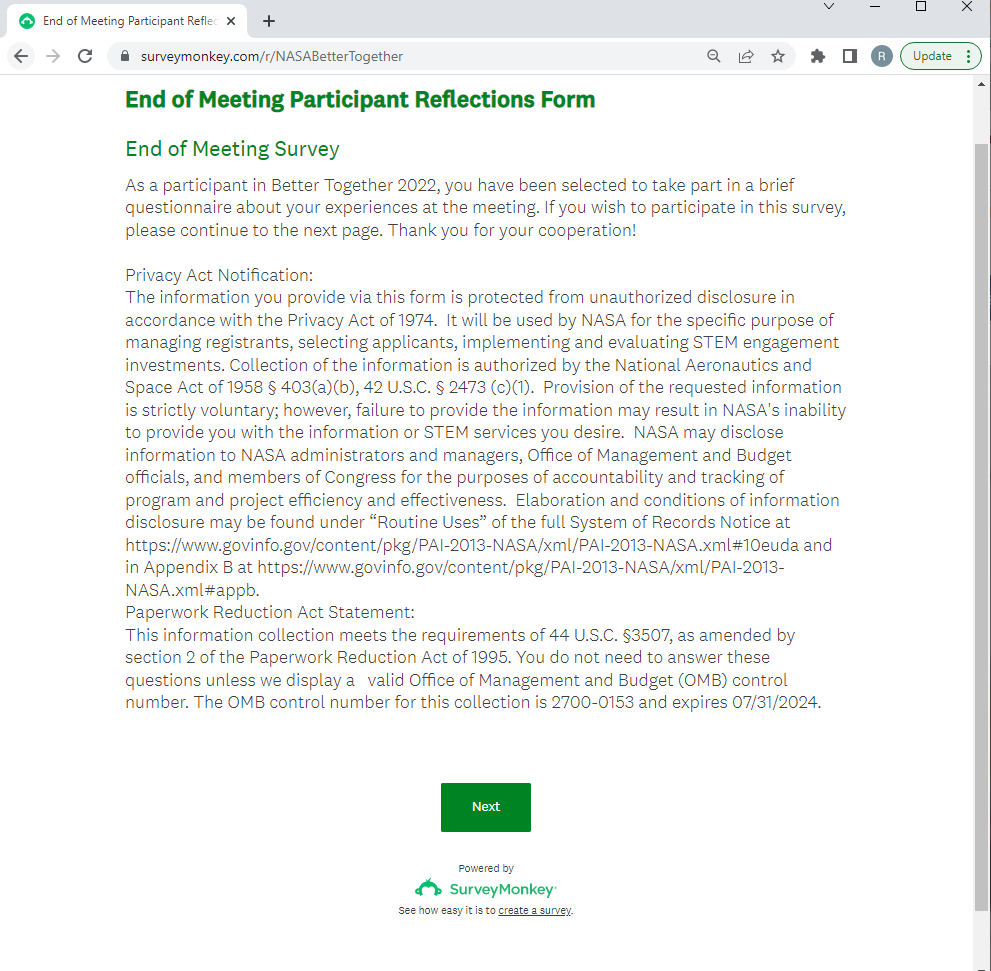 OMB: 2700-0153