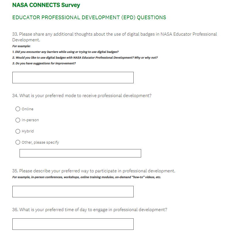 NASA CONNECTS Evaluation Survey Screenshots (4-7-23)