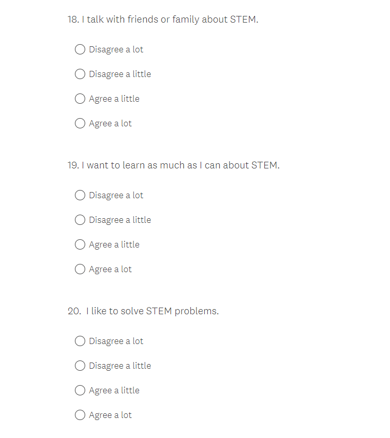 NASA K-12 Student Outcome Assessment Survey Screenshots