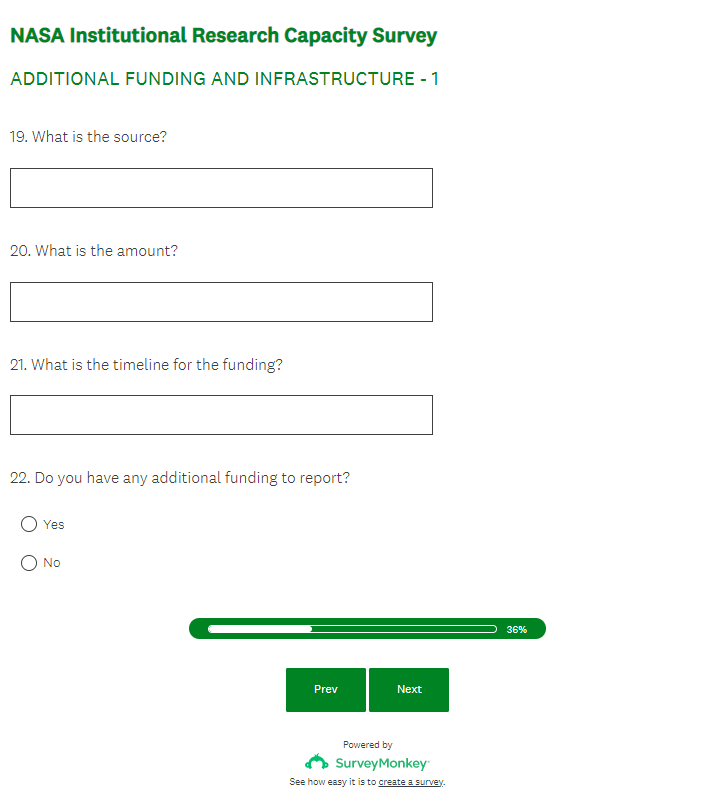 NASA EPSCoR IRC Outcome Assessment Survey Screenshots (4-17-23)