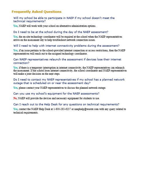 NAEP will also ask to utilize school-based Internet—when possible—as the program continues to examine a shift toward online assessments. NAEP representatives will contact your district in the coming months to learn more about your schools’ Internet capabilities.