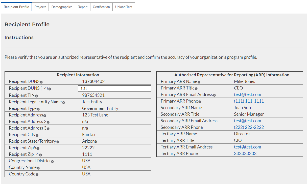 Note: This information is required for Treasury to complete the FSRS.gov reporting on your behalf.