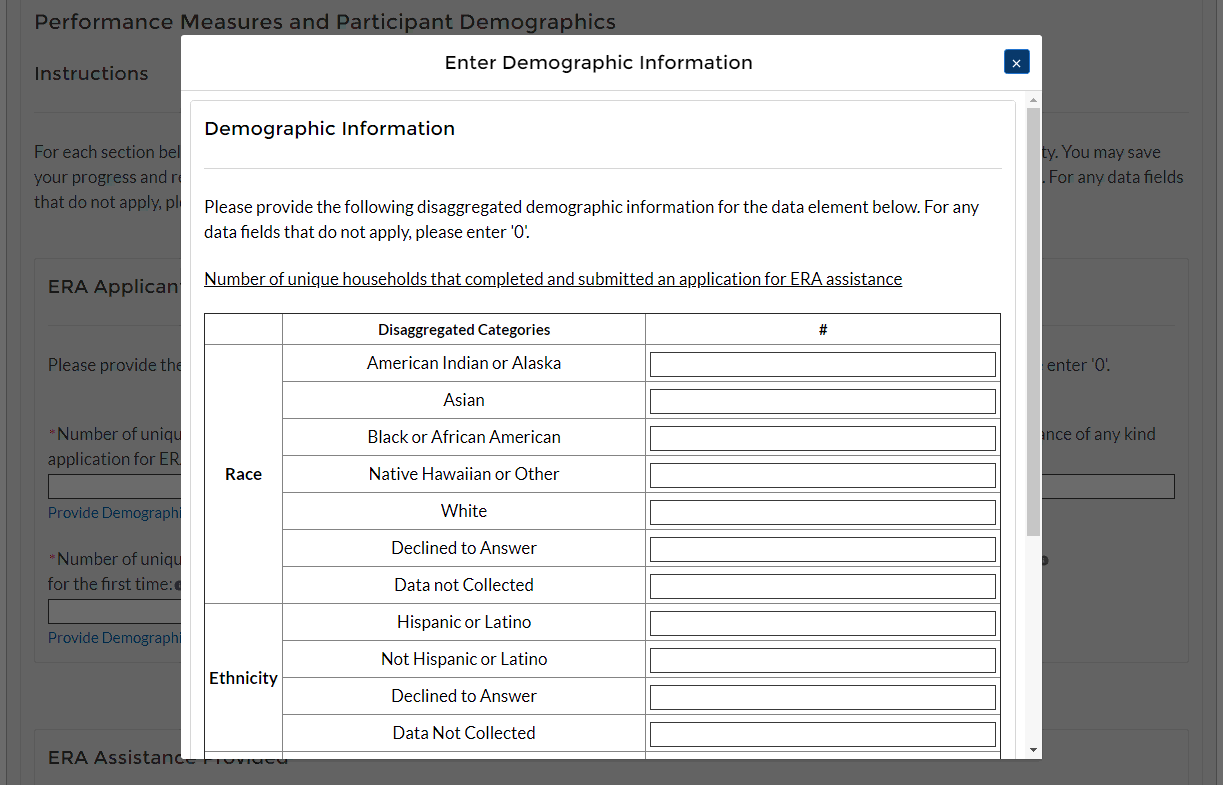 Additional information is located in the Reporting Guidance posted on the ERA website, as well in the ERA Frequently Asked Questions (FAQs) and fact sheets, which provide important information regarding ERA.
