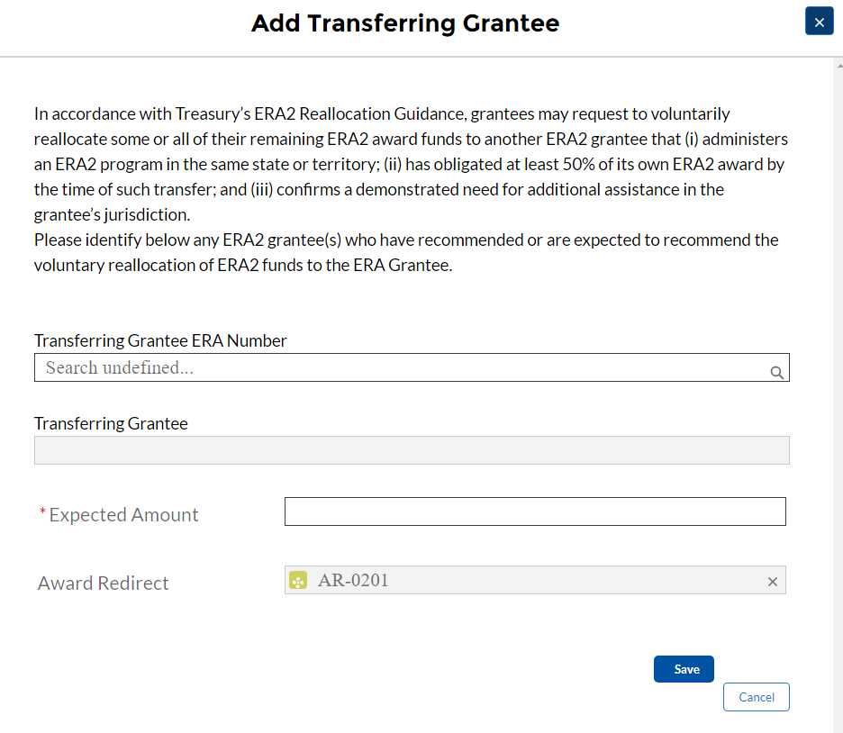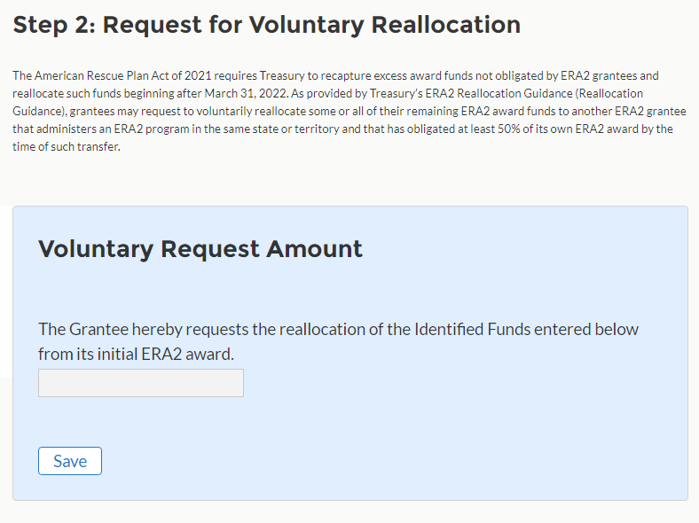 FORM 3: ERA2 – Request to Voluntarily Reallocate Excess Funds