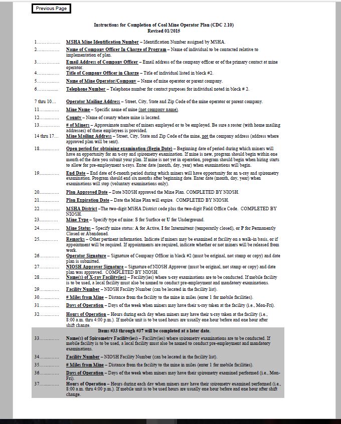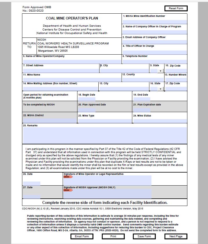 Mine Operator’s Plan – Form No. CDC/NIOSH (M) 2.10