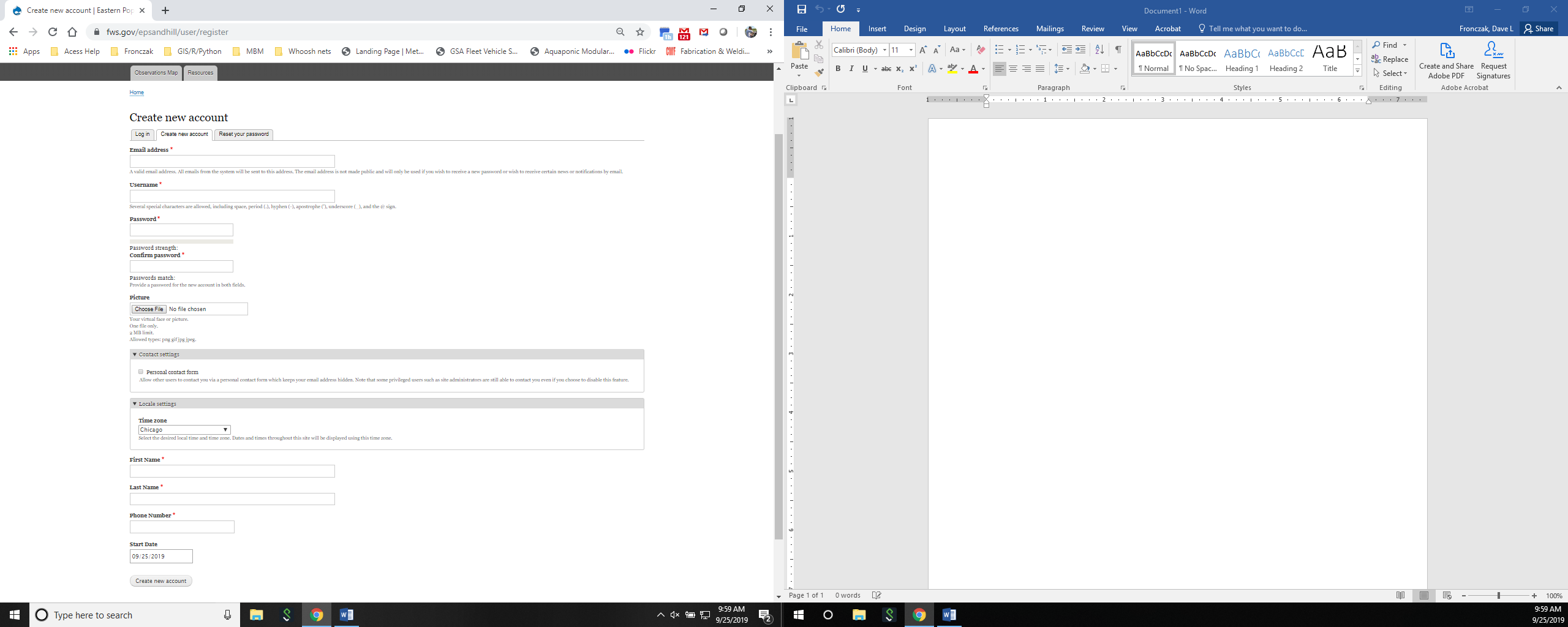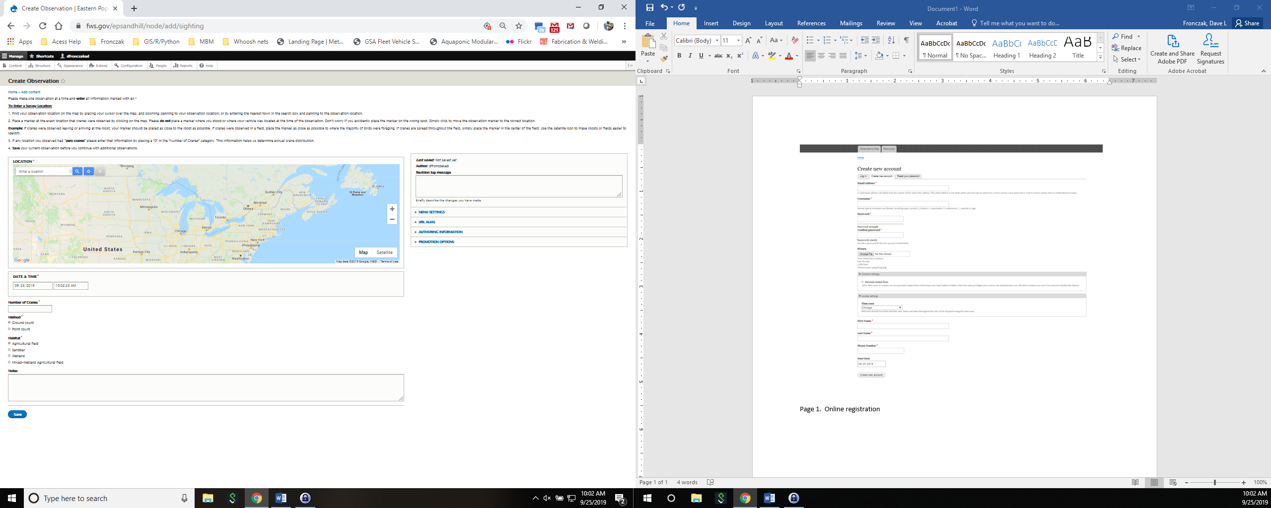Online registration page