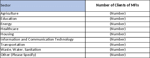 Of the Total Number of Clients of MFIs listed above, what is the allocation to the following sectors: