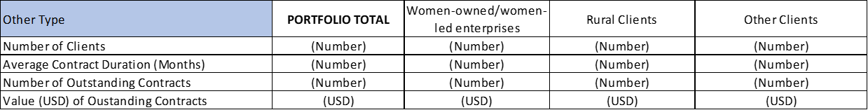 For enterprises engaged in the provision of financial services, "Project" refers to the portfolio of financial product(s) (e.g., loans, equity investments, leasing contracts, insurance contracts, etc.) supported by DFC.