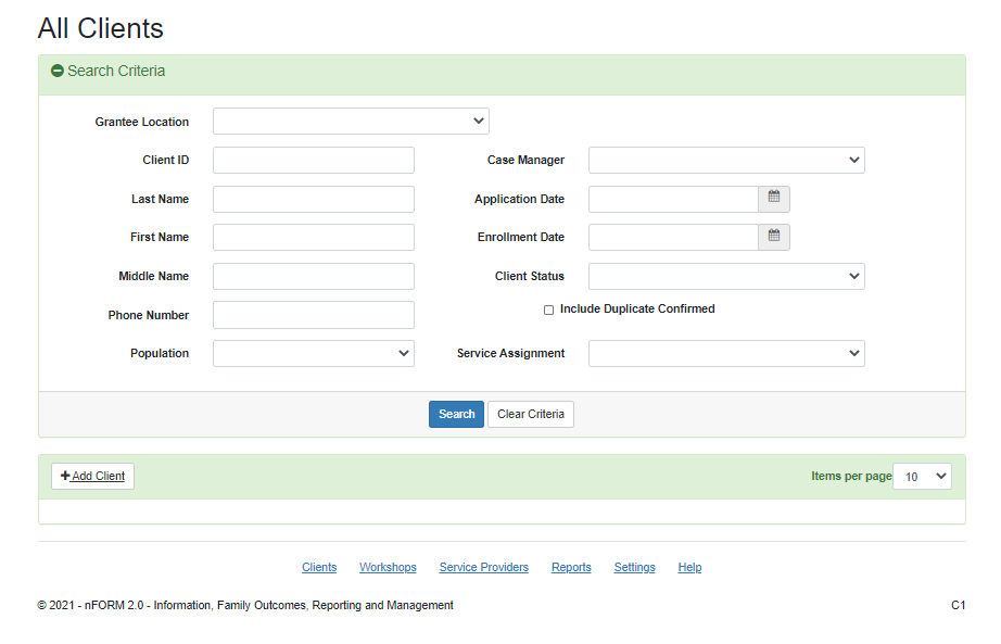 C1-C6. Client Level Data on Service Contacts, Referrals, Incentives, and Workshops