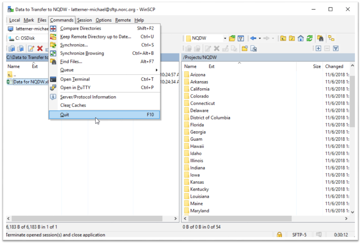 This is where you will save your files. Please note that we have also provided your folder path (i.e. /Projects/NQDW/[State name] in the SFTP confirmation emails.