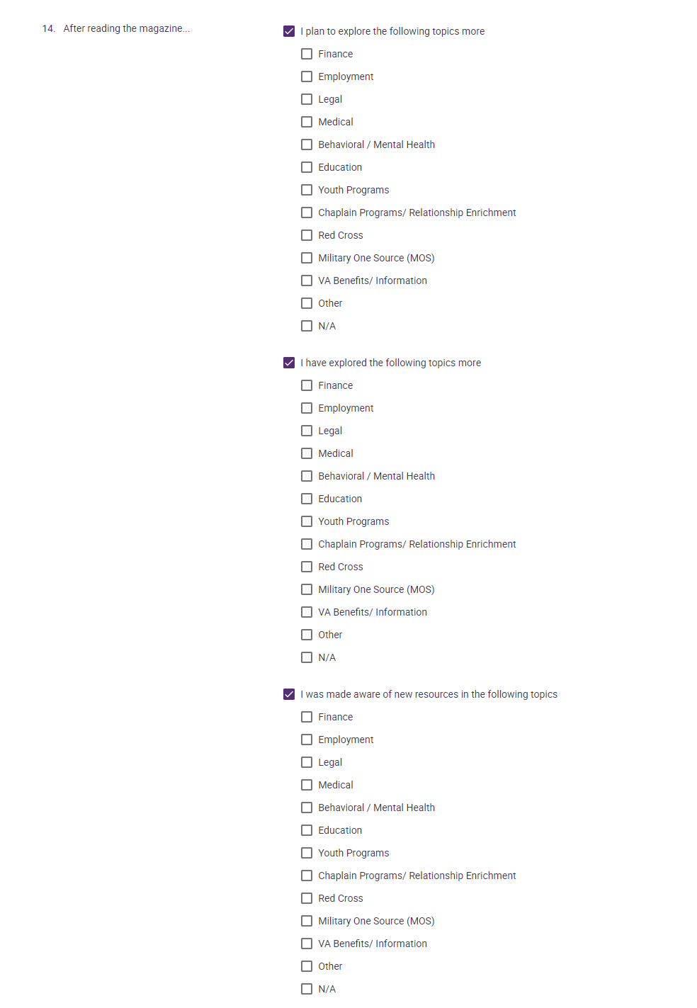 | Subject | Data Collection: During Deployment mailer, Sms evaluations |