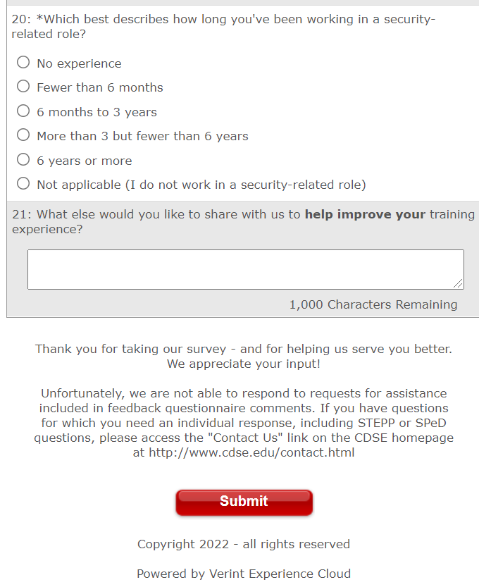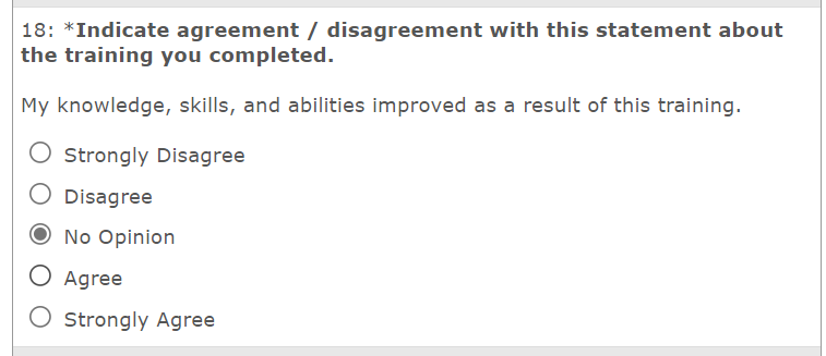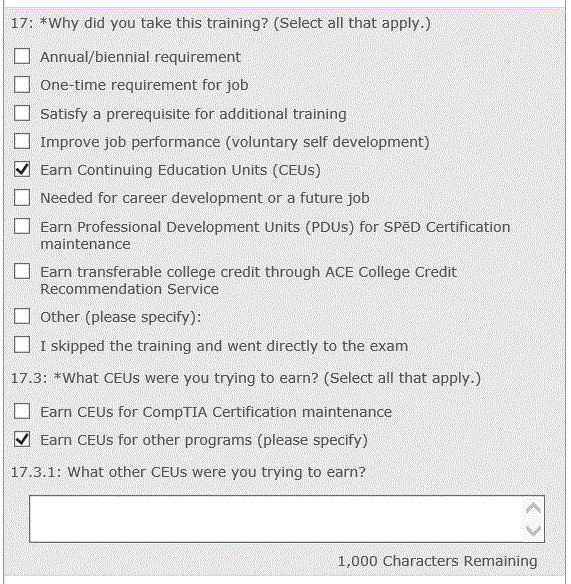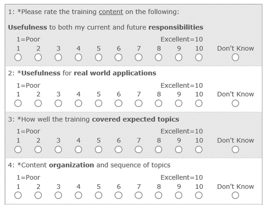 CDSE eLearning Course Student Evaluation Survey Screen Captures