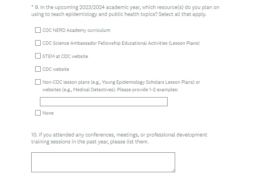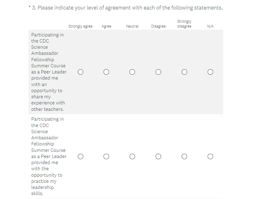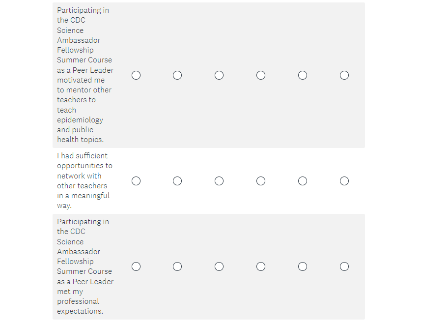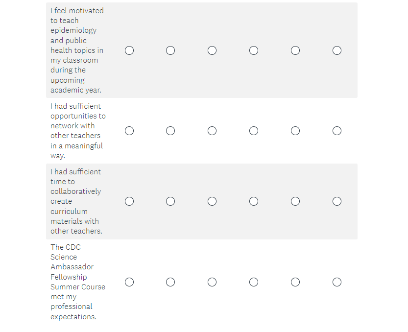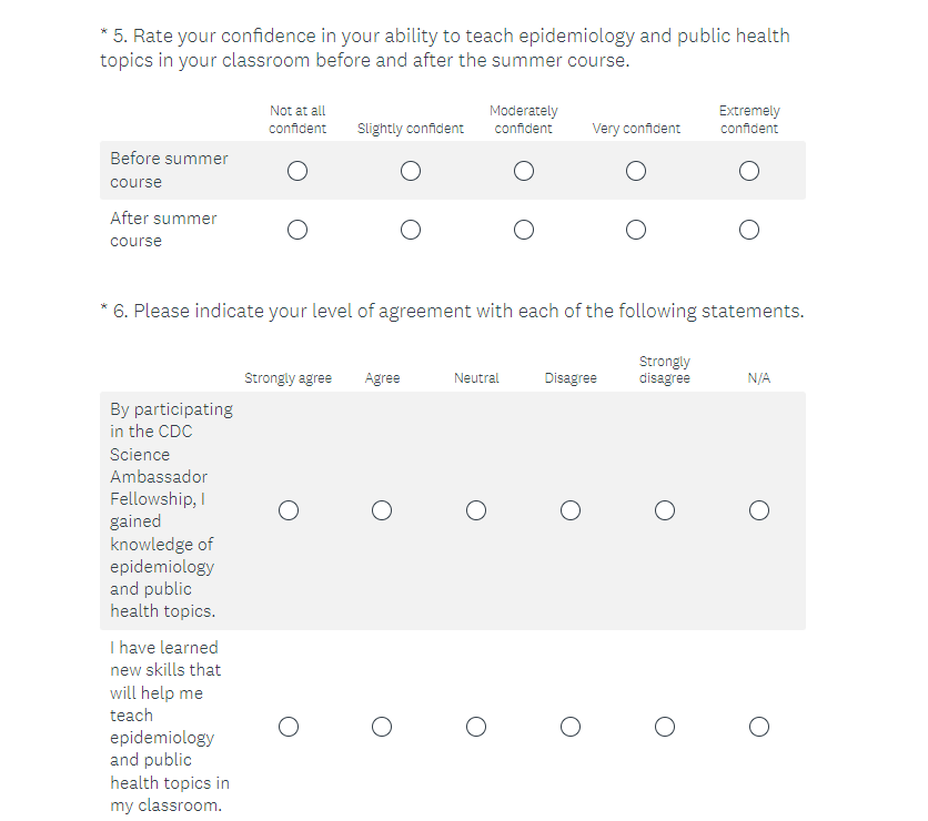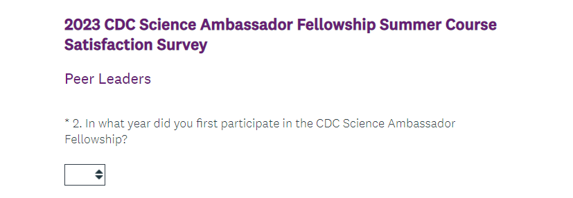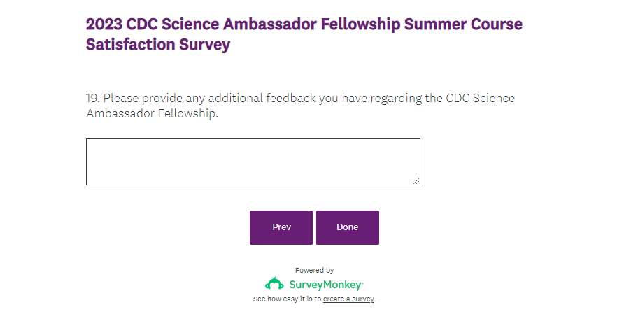 Attachment 2. 2023 CDC Science Ambassador Fellowship Summer Course Satisfaction Survey Screenshots