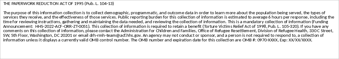| Services for Survivors of Torture Program Semi-Annual Performance Progress Report Program Metrics Instructions |